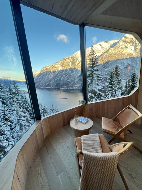 The hike can take about 20-40 minutes, depending on fitness levels and weather. It is steep and can be slippery when wet, so we would strongly recommend bringing good hiking shoes and suitable clothes. You will also find snow spikes in the garage that you can slide on under your shoes in case of snow and ice. Remember to remove them before entering the treehouse. Large parts of the trail consists of stairs of wood, stone and aluminium, and uneven ground. There are not a lot of railings to hold on to.